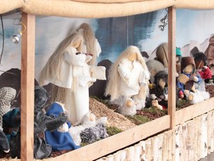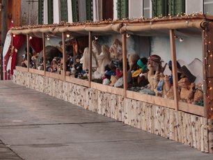 Wie jedes Jahr verwandelt sich die Hausfront vom Berchtoldshof in eine 16 Meter lange Weihnachtskrippe.